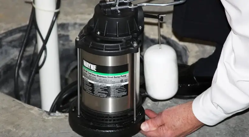 A submersible sump pump has the motor and its housing located inside the hole. Submersible pumps are quieter and more powerful so if you spend time in your basement or need to pump out a lot of water, those are preferable. Most pumps run between 1/3 hp and 3/4 hp.